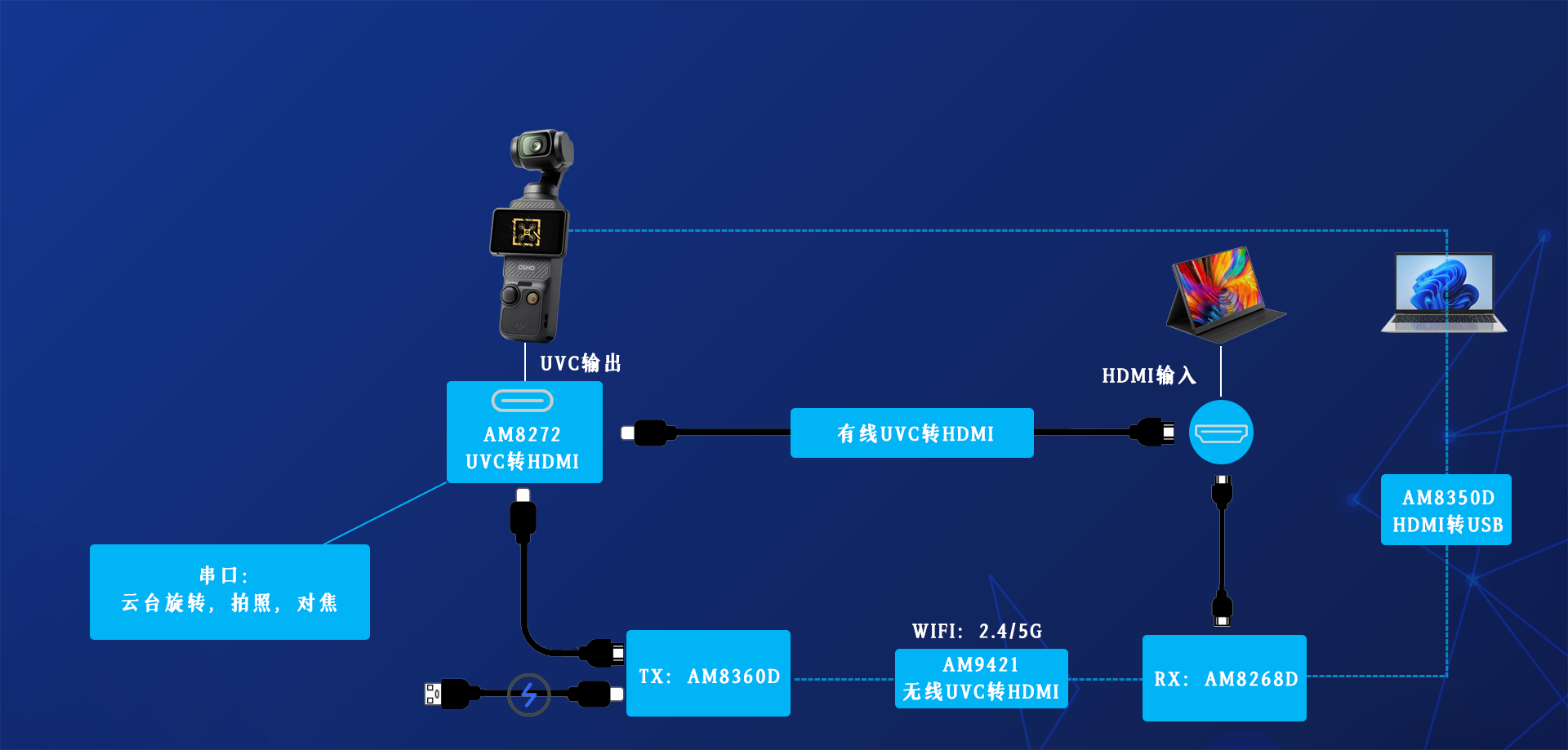 AM8350D是基于UVC協議的HDMI TO USB 芯片,最高支持4K30 的UVC輸出,高集成度,精簡外圍,可以直接集成在線材里,用來做車機點屏線等車機娛樂系統